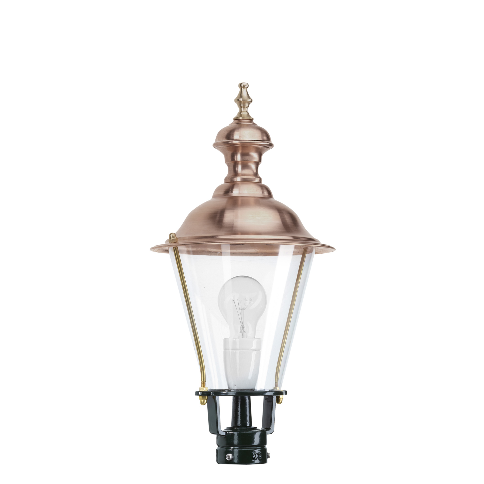 Het ontwerp van de K3B kenmerkt zich door een ronde, licht uitlopende kap met een authentieke uitstraling. De combinatie van een aluminium basis met een koperen deksel en messing details geeft deze kap een rijke, ambachtelijke uitstraling. De klassieke belijning sluit naadloos aan bij historische gevelarchitectuur en landelijke tuinen.Materialen en technische specificaties: De kap is vervaardigd uit duurzaam gegoten aluminium en afgewerkt met een dubbele poedercoating voor optimale bescherming. De koperen deksel ontwikkelt na verloop van tijd een natuurlijke patina, wat bijdraagt aan de nostalgische uitstraling. De kap is voorzien van een porseleinen E27 fitting en geschikt voor LED-lichtbronnen. Standaard geleverd met helder kunststof glas. Toepassing: Deze klassieke KS lantaarnkap is ideaal als gevelverlichting landelijk, bij de voordeur, op een sokkel in de tuin of als stijlvolle buitenlantaarn klassiek bij het terras. Let op: Het sokkelplaatje is optioneel en los verkrijgbaar.Ontdek de kracht van tijdloos design en bestel deze klassieke lantaarnkap eenvoudig via Nostalux. Breng sfeer en stijl naar buiten met verlichting die generaties meegaat.