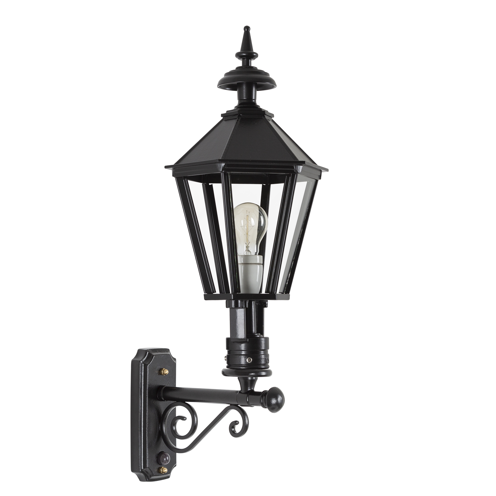 Nostalgische buitenlamp Longton is te verkrijgen in de kleuren Groen, antraciet en Zwart. De Darwin heeft een ingebouwde bewegingssensor die alleen geactiveerd wordt bij schemering. De sensor zal overdag niet functioneren. Hierdoor schrik je ongenodigde gasten af! De lamp is vervaardigd van een hoogwaardige kwaliteit aluminium en wordt geleverd met een dubbellaagse poedercoating. De lamp is voorzien van E27 fitting. Gebruik van energiezuinige spaarlamp is bij deze lamp niet mogelijk.Werkzame hoek: ongeveer 100° (graden). De lamp brandt na detectie van beweging ongeveer 1 minuut en 40 seconden. Wanneer er binnen deze tijd opnieuw beweging wordt gedetecteerd, zal een extra 1 minuut en 40 seconden worden toegevoegd. De bewegingsmelder werkt vanaf het intreden van schemer en zal dus overdag niet gaan branden.