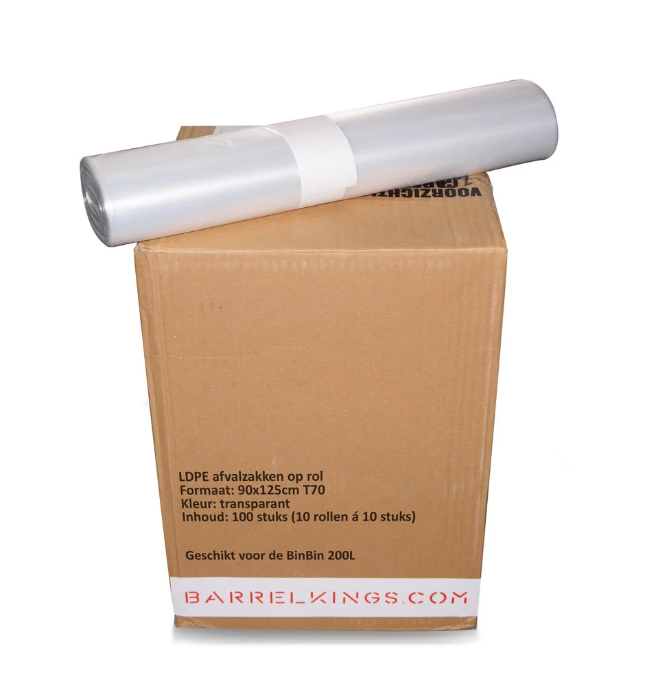 Afvalzak BinBin 200 Liter olievat prullenbak transparant 100 st.