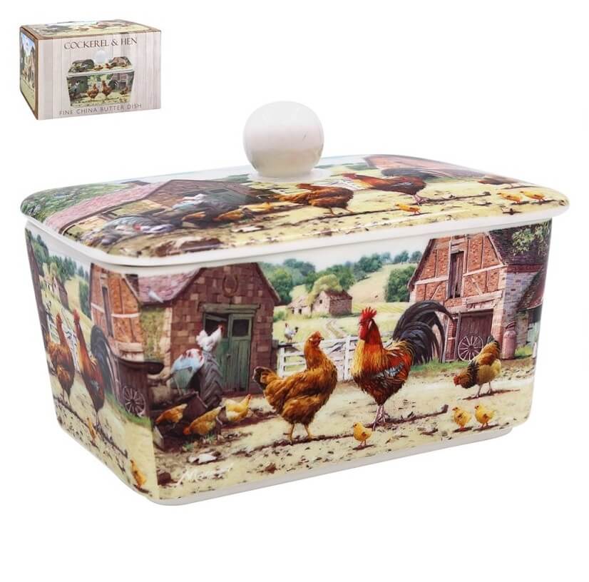 Botervloot Haan en Hen van keramiek zeer leuk motief echt een landelijke look.