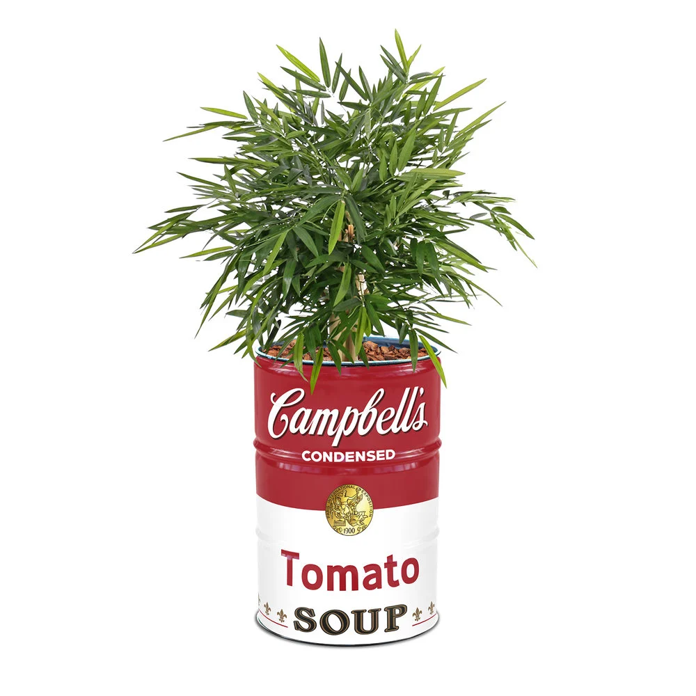 200 liter Campbell's soup by Andy Warhol plantenbak – Bloembak- Industrieel| Retro| Vintage metalen olievat 57×87 cm. Inclusief 65 liter binnen kuip.