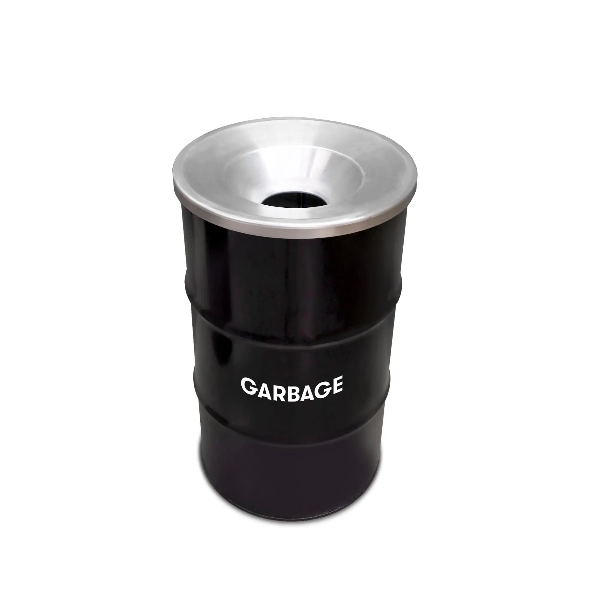 Een stoere, grote prullenbak met een industriële uitstraling. Het is een olievat afvalbak met een praktisch formaat, slank met een grote volume! Deze afvalbak is voorzien van een vlamwerend deksel met een gat van met een doorsnede van 14 centimeter. Het gat in de deksel zorgt ervoor dat mensen geen al te groot afval in de prullenbak gooien.