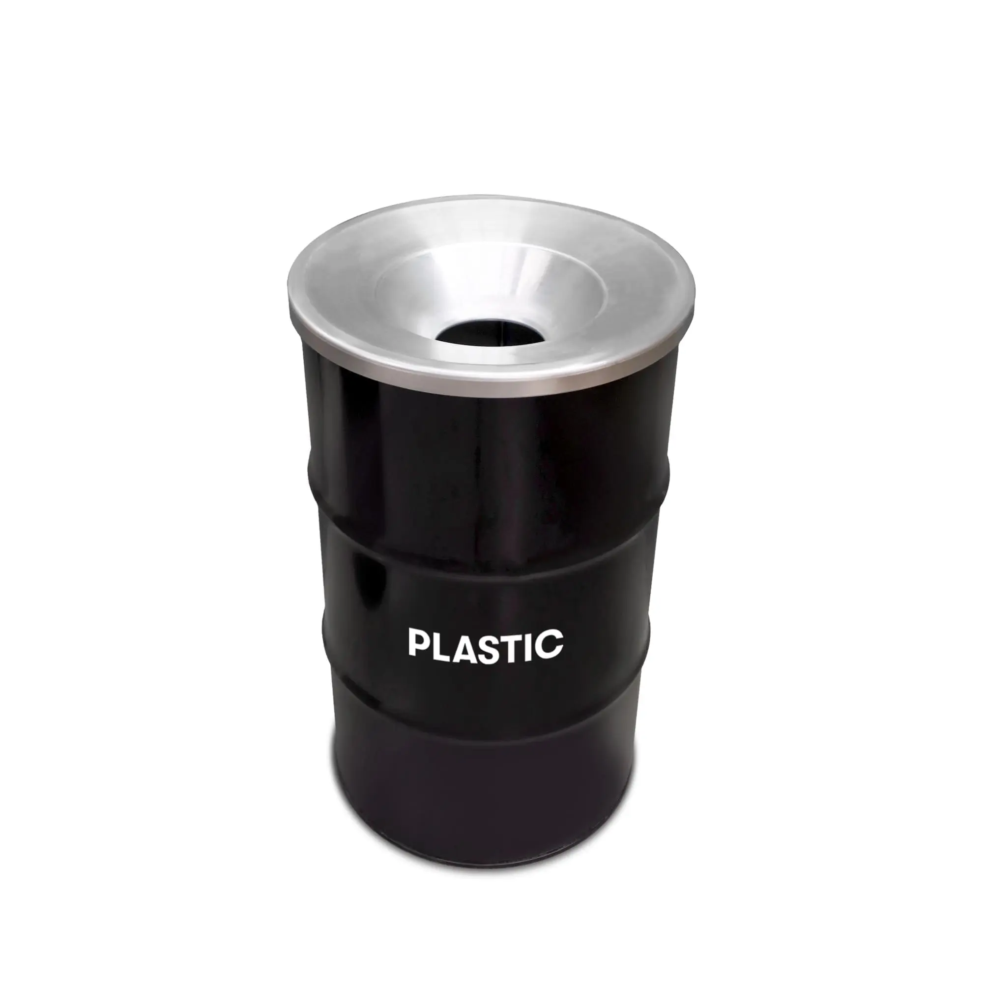 De BinBin vlamwerend Plastic is een stoere en praktische zwarte metalen prullenbak 120 liter met een industriƫle uitstraling. Deze olievat afvalbak is speciaal ontworpen om uw Plastic ''afval'' gemakkelijk in te deponeren. Door zijn praktische formaat en uitstraling is deze olievat afvalbak overal inzetbaar. Gebruik het in huis, op kantoor of in uw winkel. De BinBin Plastic bak kan gemakkelijk ingezet worden als afvalscheidingsstation in combinatie met de plastic en vuil variant.