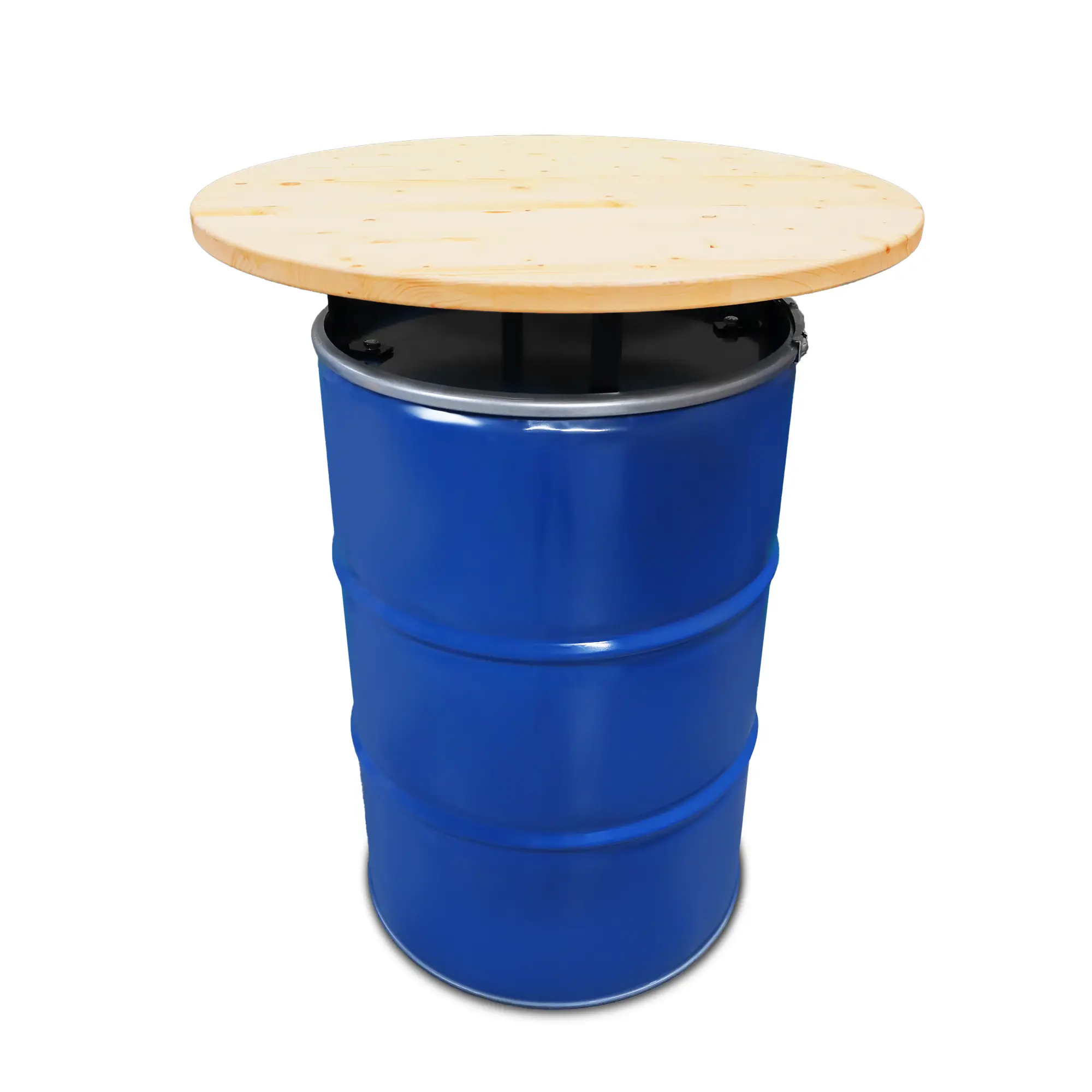 Industrieel Statafel olievat 200L met houten tafelblad.