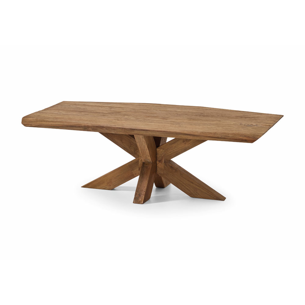 Het natuurlijke teak is met zorg geselecteerd en afgewerkt om de rijke nerfstructuur en warme tinten volledig tot hun recht te laten komen. De Sumatra straalt authenticiteit uit – elk exemplaar is uniek dankzij de natuurlijke variaties in het hout.