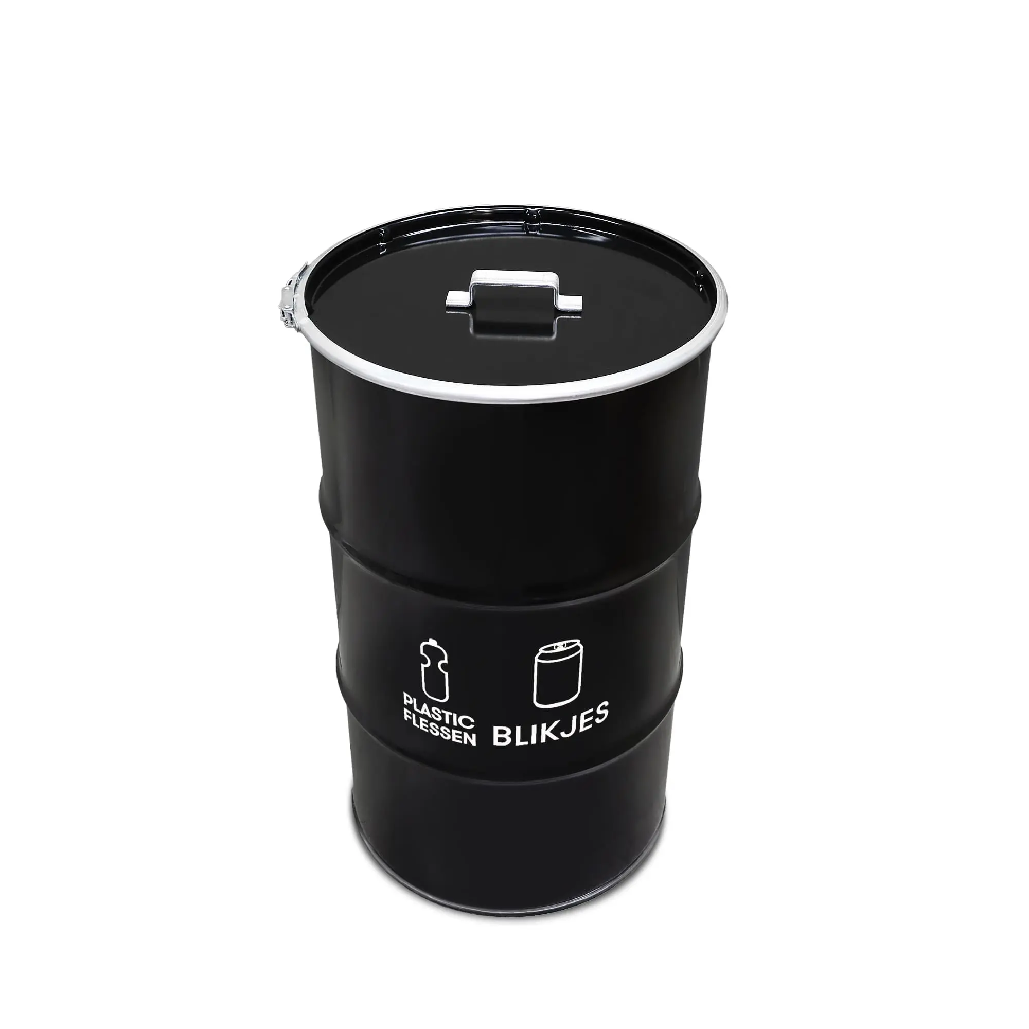 BinBin Duo zwart 120 Liter olievat afvalscheiding prullenbak met handvat deksel| grote afvalbak| blikjes- flessen inzameling| inzamelbak blikken | Flessen | statiegeld blikken-flessen | Horeca afvalbak | Kantine afvalbak met gatdeksel