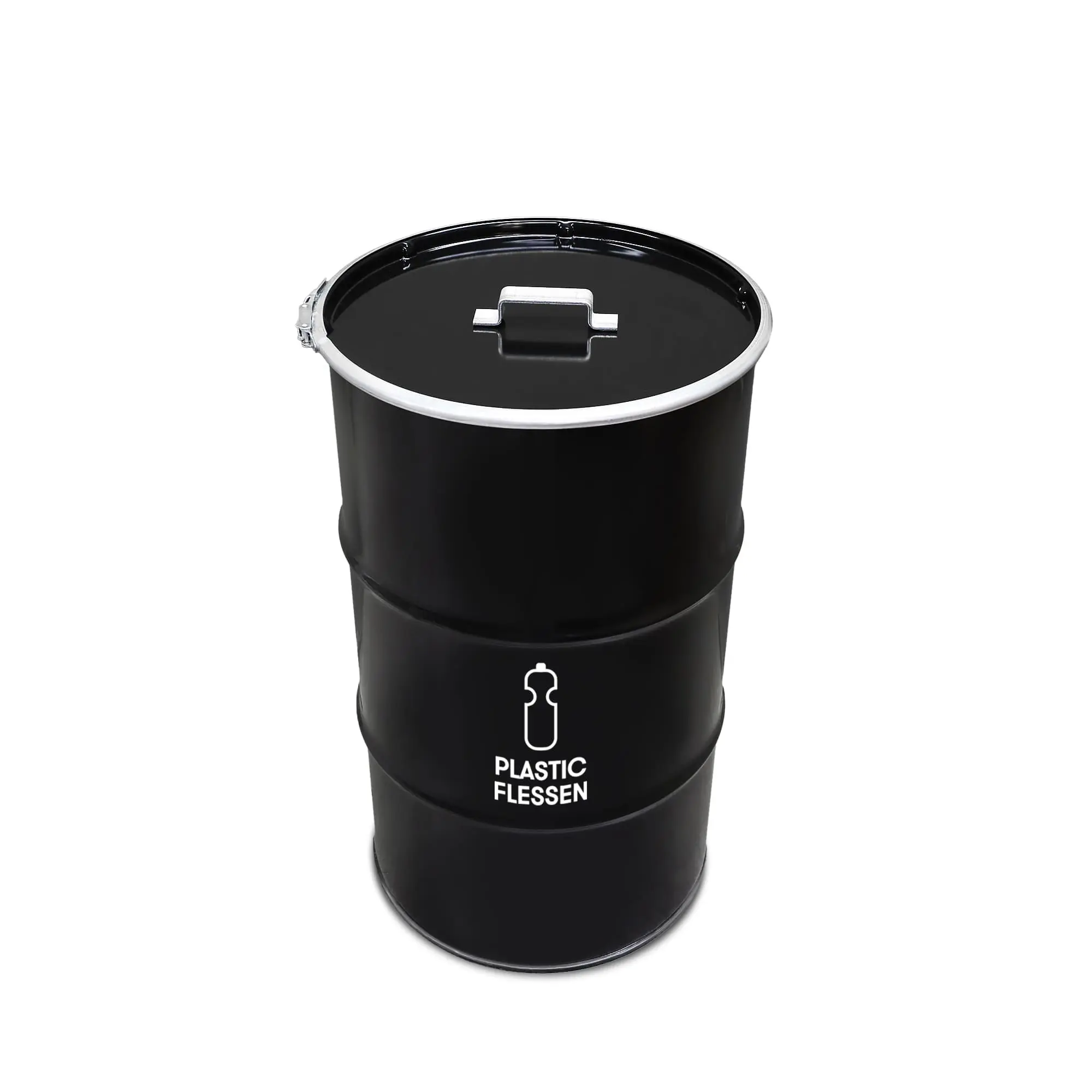 De BinBin Handvat Plastic flessen is een stoere en praktische zwarte metalen prullenbak 120 liter met een industriƫle uitstraling. Deze olievat afvalbak is speciaal ontworpen om uw papieren ''afval'' gemakkelijk in te deponeren. Door zijn praktische formaat en uitstraling is deze olievat afvalbak overal inzetbaar. Gebruik het in huis, op kantoor of in uw winkel. De BinBin papierenbak kan gemakkelijk ingezet worden als afvalscheidingsstation in combinatie met de plastic en vuil variant.