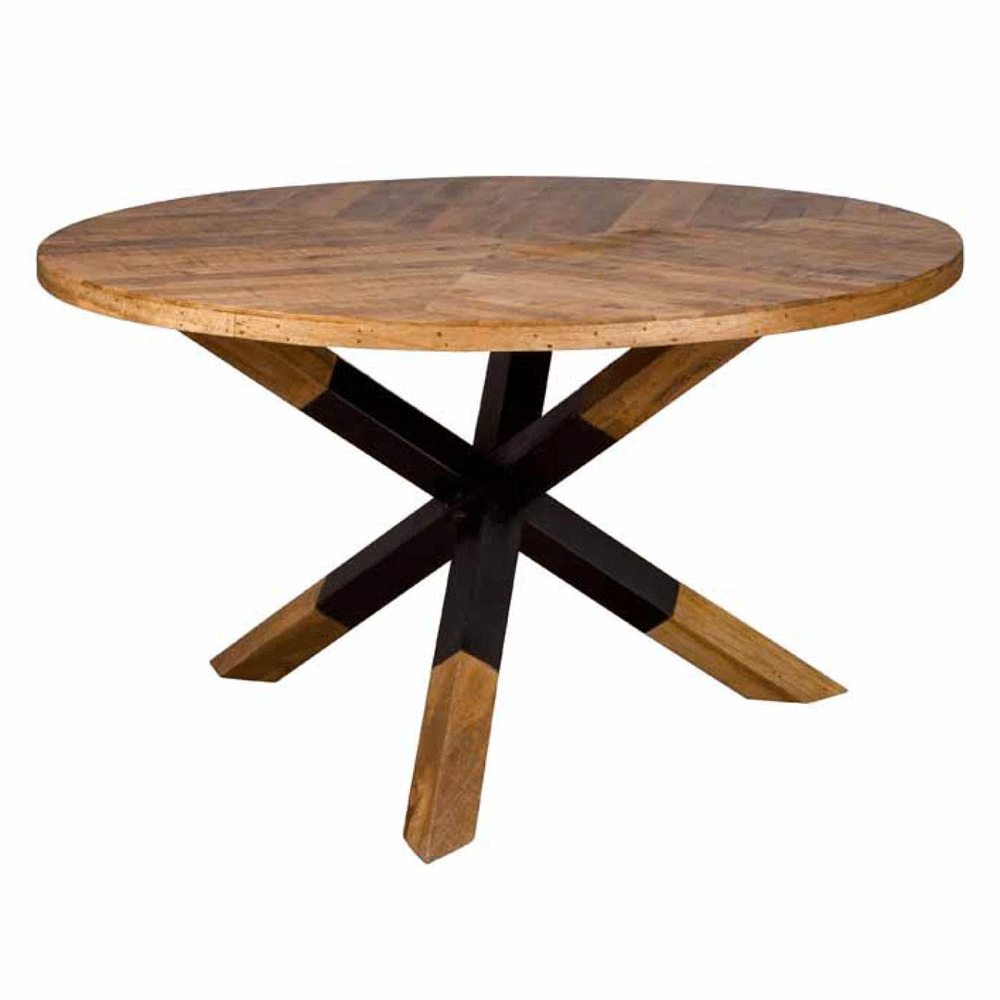 Eettafel Viola heeft een eigen stijl. Het mangohouten tafelblad heeft een diameter van 130 cm. De landelijke tafel krijgt extra flair waneer hij bijgestaan wordt door het onderstel. Het metalen frame wordt afgewerkt op de uiteinden met een gedeelte hout.